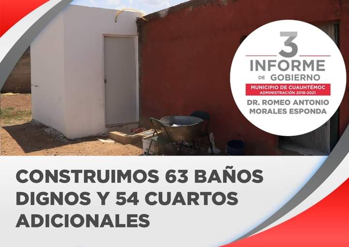 En el 2021, el Gobierno Municipal de Cuauhtémoc destinó 6 millones 224 mil 446 pesos para apoyar a familias vulnerables con la construcción de 63 baños dignos y 54 cuartos adicionales en viviendas de la cabecera municipal, así como de los seccionales Anáhuac y Álvaro Obregón.