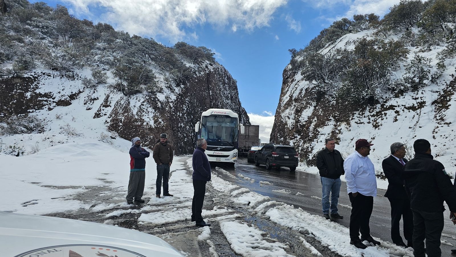 -Como parte de los efectos de este fenómeno meteorológico, esta mañana se registró la presencia de nieve sobre los tramos carreteros de Puerto San Luis y Puerto los Lobos, donde se mantiene abierta la circulación