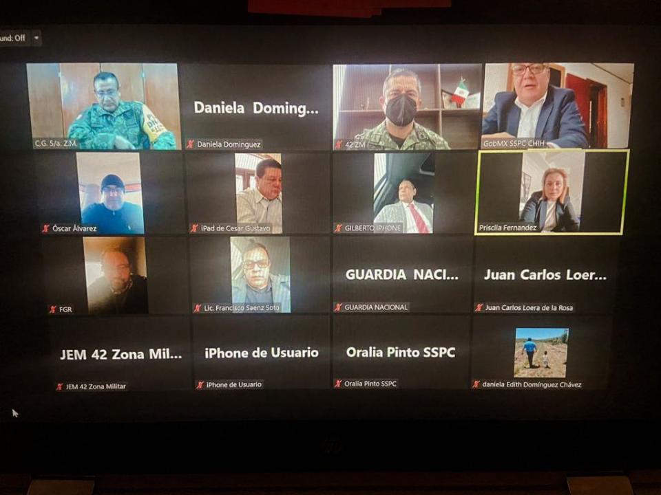 Durante la sesión de la Mesa Estatal de Seguridad, que en está ocasión se realizó vía Zoom, la gobernadora Maru Campos, en compañía del secretario general de Gobierno, César Jáuregui, en compañía de Roberto Fierro, fiscal general del Estado, así como representantes de la Guardia Nacional, el Ejercito Mexicano y la Fiscalía General de la República para dar seguimiento a los acontecimientos más relevantes ocurridos durante la semana pasada y el fin de semana.