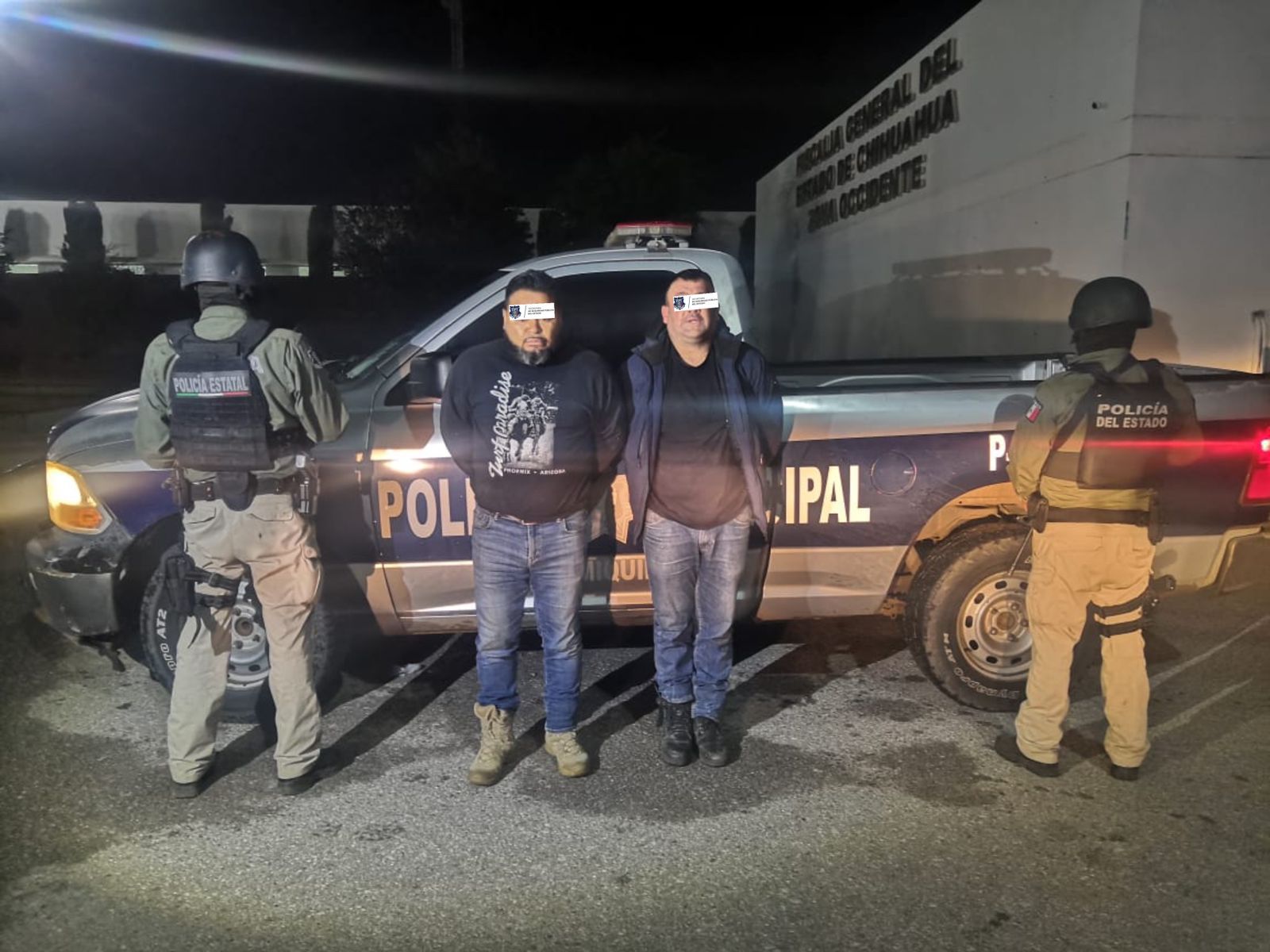 Los hechos ocurrieron durante los recorridos de reforzamiento táctico de los agentes, quienes detectaron un vehículo oficial de la Policía Municipal de Namiquipa, en el cual circulaban ambos sujetos, quienes vestidos de civiles, portaban consigo evidente armamento, razón por lo que fueron interceptados.