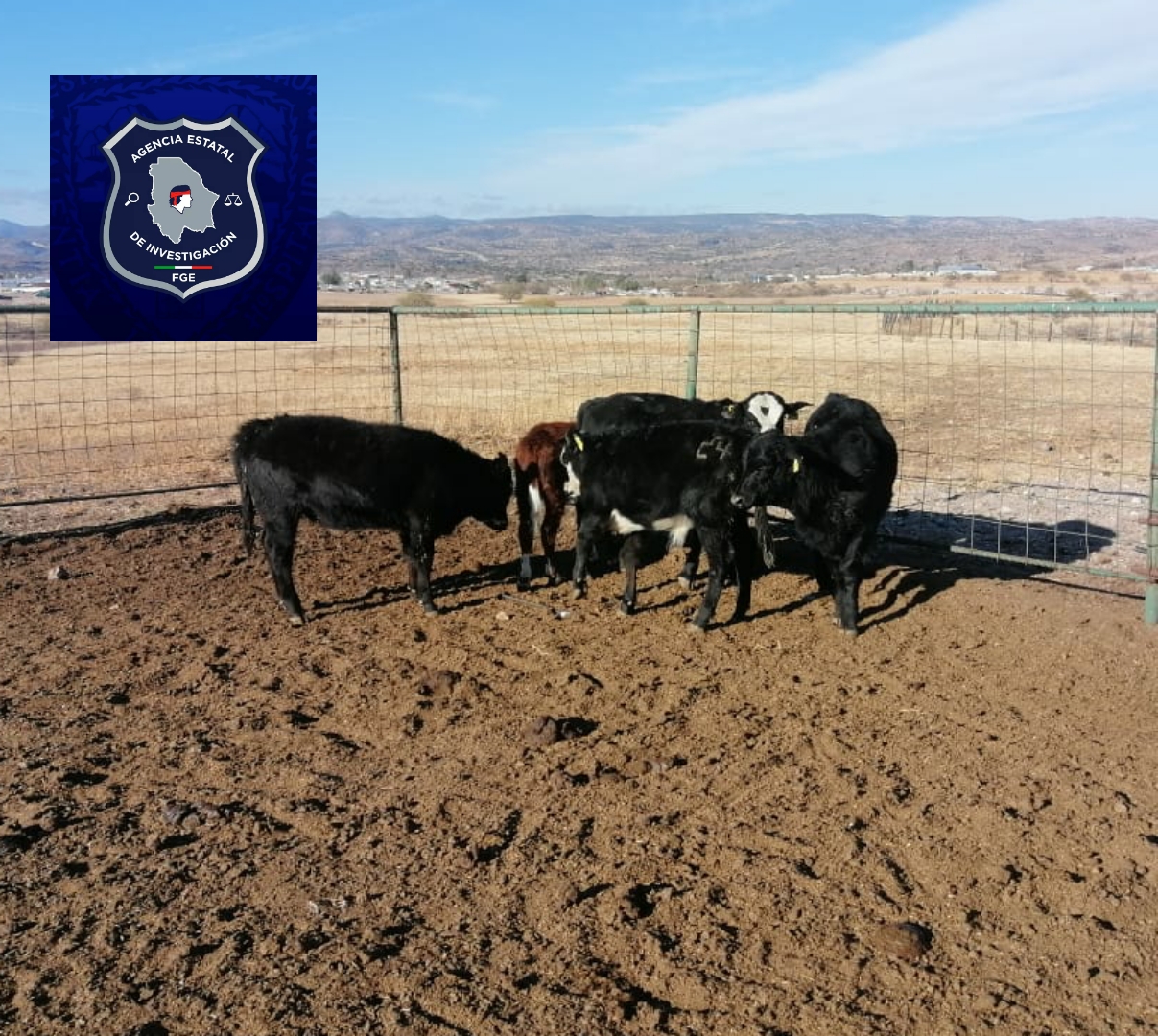 Personal de investigación de la Fiscalía de distrito zona occidente informó que a la salida del poblado localizaron los cinco becerros, cuatro de color negro y uno colorado.