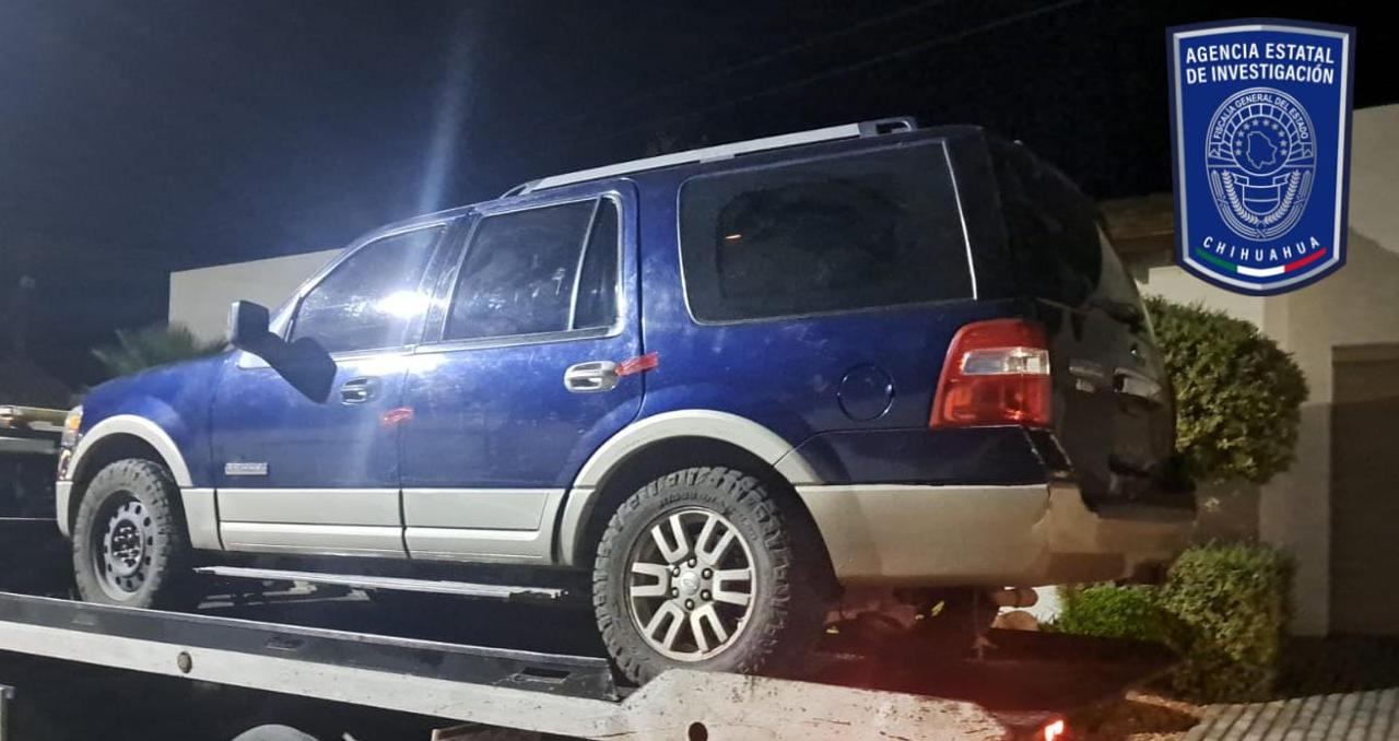 Una camioneta blindada Ford Expedition color azul sin reporte de robo.