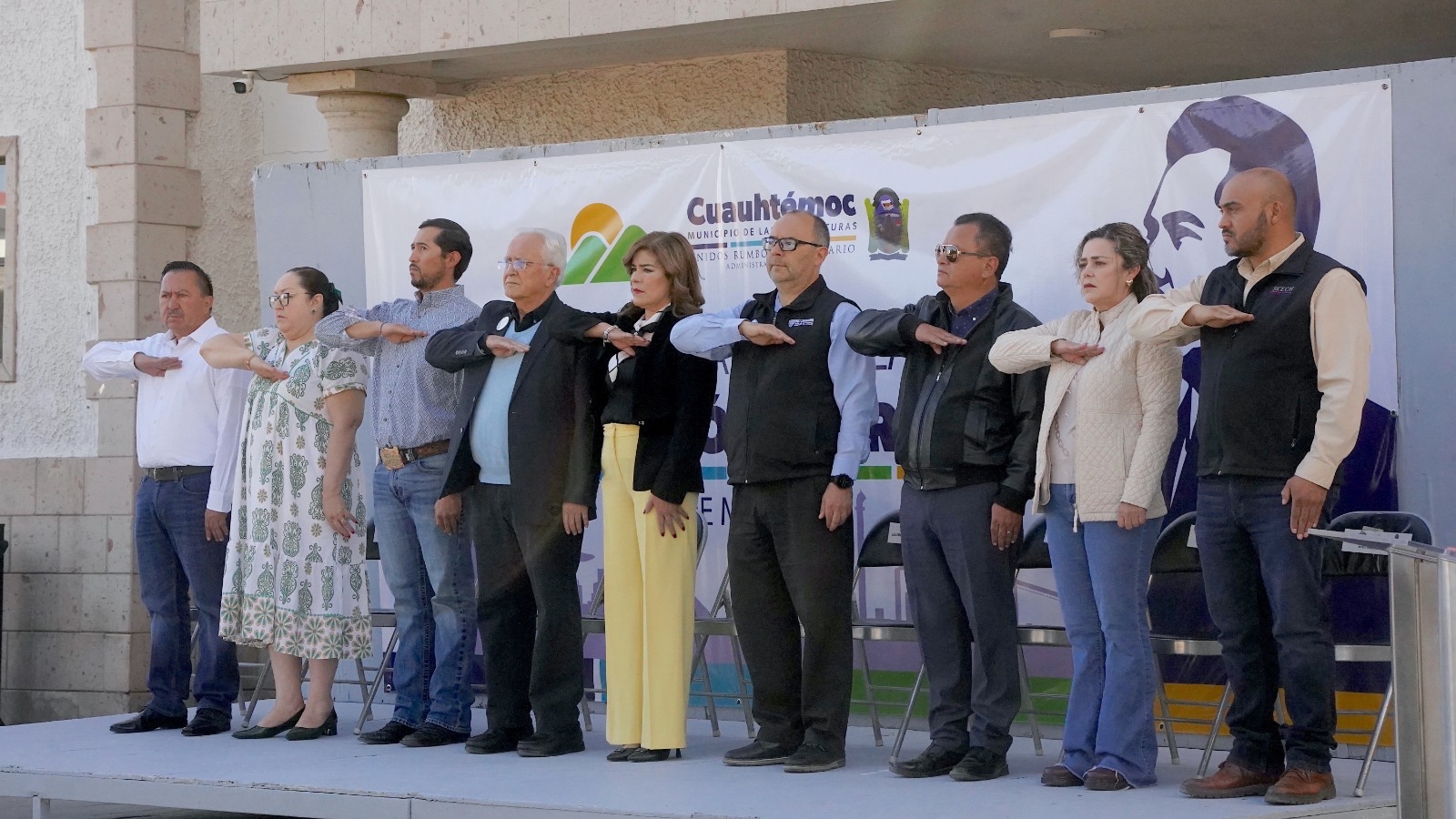 En el evento estuvieron presentes alumnos de la escuela primaria Expropiación Petrolera. La banda de guerra y escolta de la secundaria Justo Sierra, dirigieron los Honores a la Bandera, mientras que elementos de la Dirección de Seguridad Pública Municipal se encargaron de izar la gran bandera en el asta.