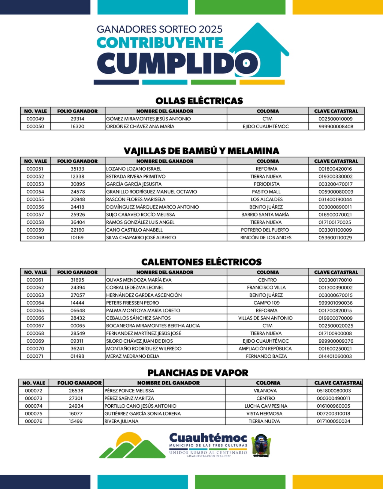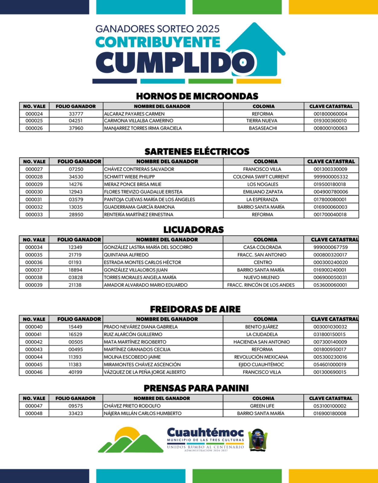 La lista de ganadores se presenta en las imágenes que acompañan esta nota.