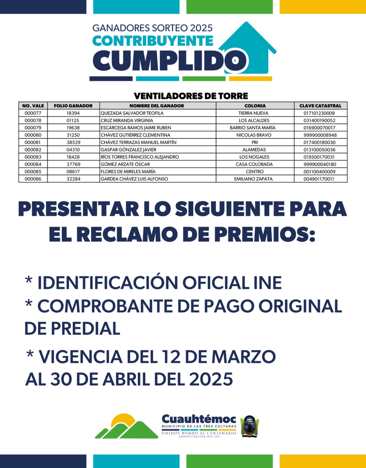 Se llevó a cabo el Sorteo Contribuyente Cumplido 2025, entre 40244 cuentas del predial que fueron pagadas en el mes de enero, evento que se llevó a cabo en el vestíbulo de la Presidencia Municipal, el cual fue encabezado por el alcalde Beto Pérez.