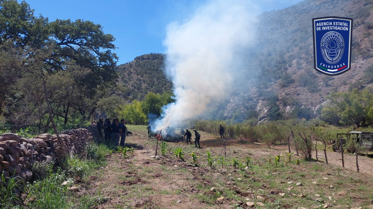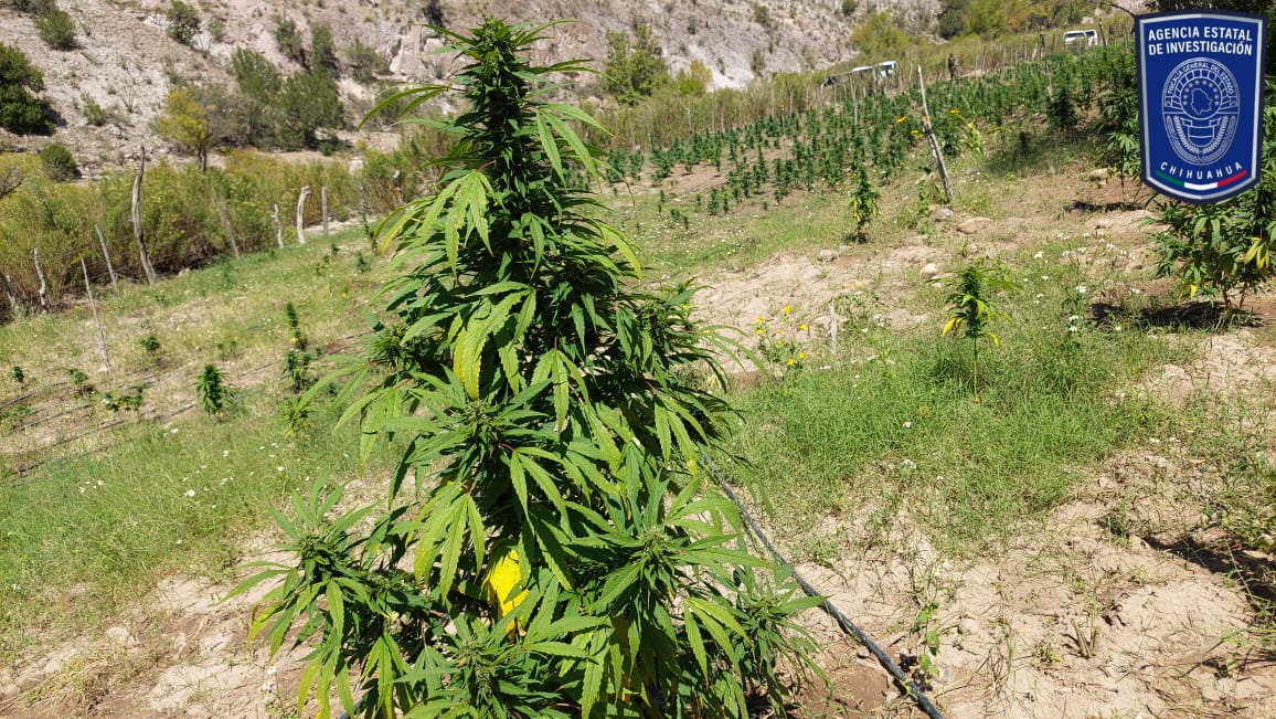 Elementos de la Agencia Estatal de Investigación, en coordinación con el Ejército Mexicano, destruyeron un plantío de mariguana que localizaron en las inmediaciones del Rancho Baguara, municipio de Nonoava.