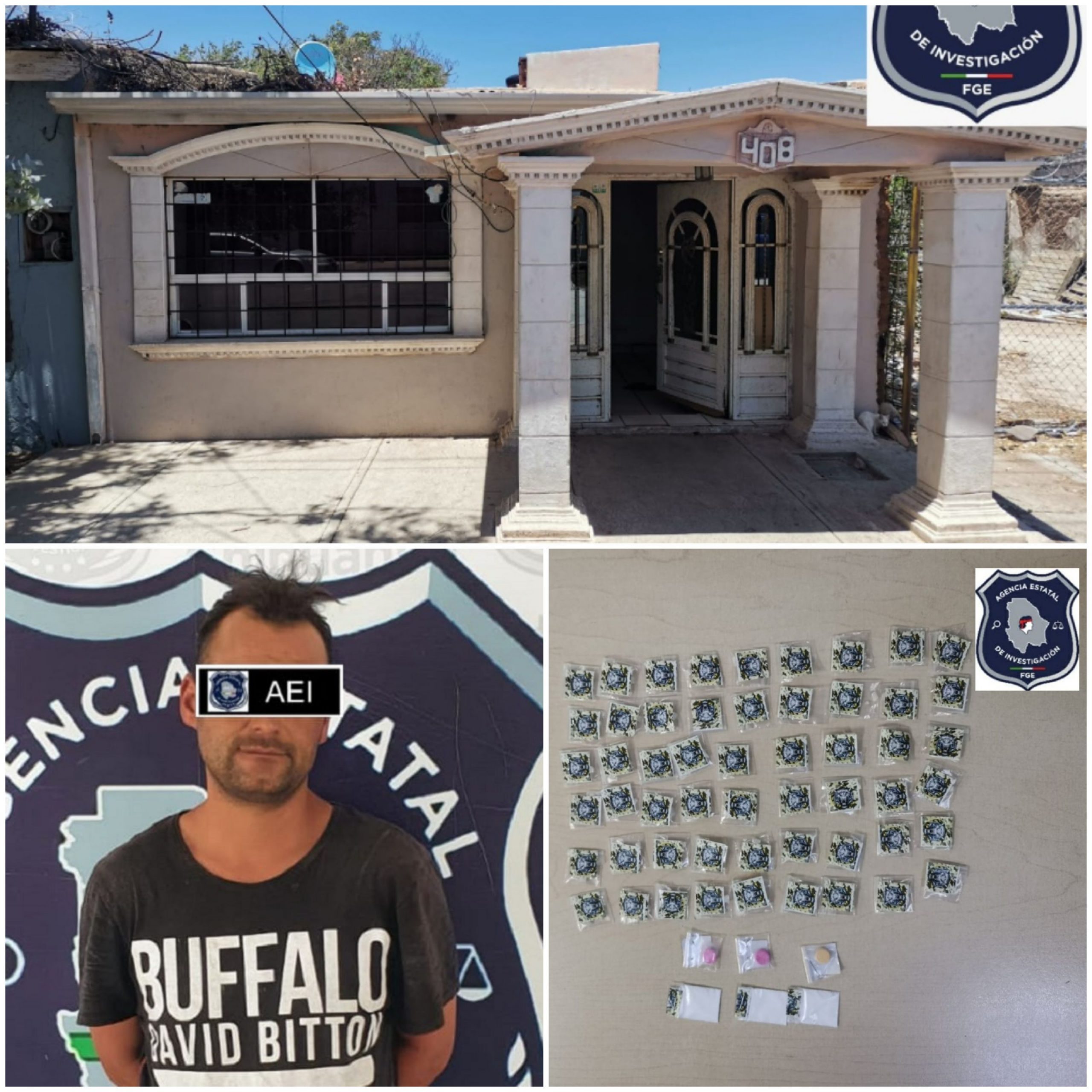 Cuauhtémoc.- Elementos de la Agencia Estatal de Investigación (AEI), detuvieron durante un cateo efectuado en una vivienda de la Colonia Barrio Viejo a un hombre en posesión de 60 envoltorios con droga.