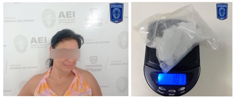 Elementos de la Agencia Estatal de Investigación, adscritos a la Fiscalía de Distrito Zona Occidente, detuvieron en flagrancia a una mujer en posesión de cristal en las calles Francisco Villa y Flores Magón de colonia Emiliano Zapata.