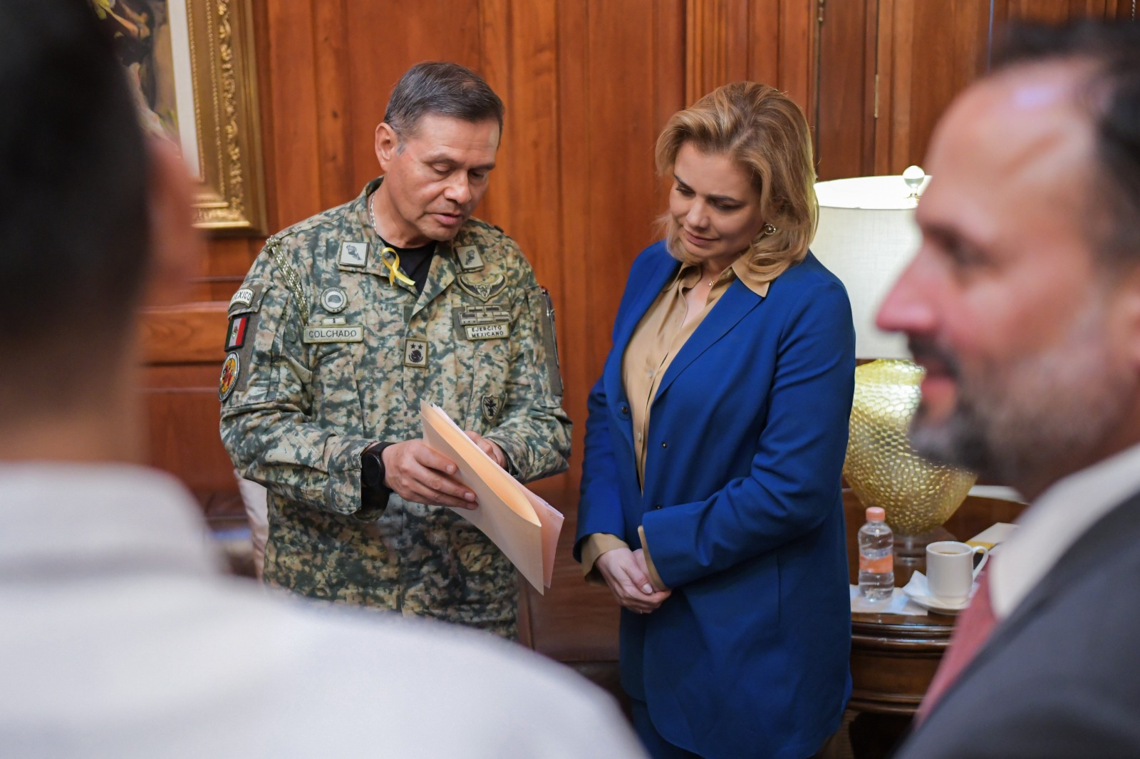 La gobernadora Maru Campos encabezó una sesión de trabajo con el comandante de la XI Región Militar, el general Fernando Colchado, con el objetivo de reforzar las estrategias para inhibir el delito y bajar los índices de delincuencia en el territorio estatal.