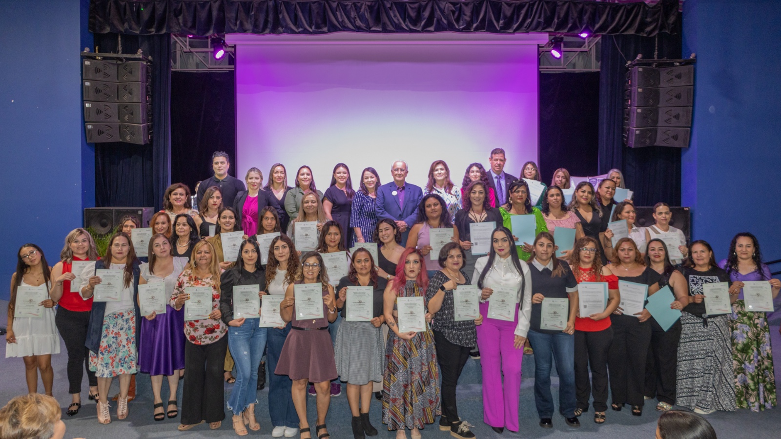 En representación de José Arturo Morales, director de Instituto de Capacitación para el Trabajo del Estado de Chihuahua (Icatech), la directora de Vinculación, Eugenia Haydee Jacinto, reconoció el esfuerzo de las mujeres por concluir sus capacitaciones, pues son las mujeres un importante motor económico en el estado de Chihuahua.