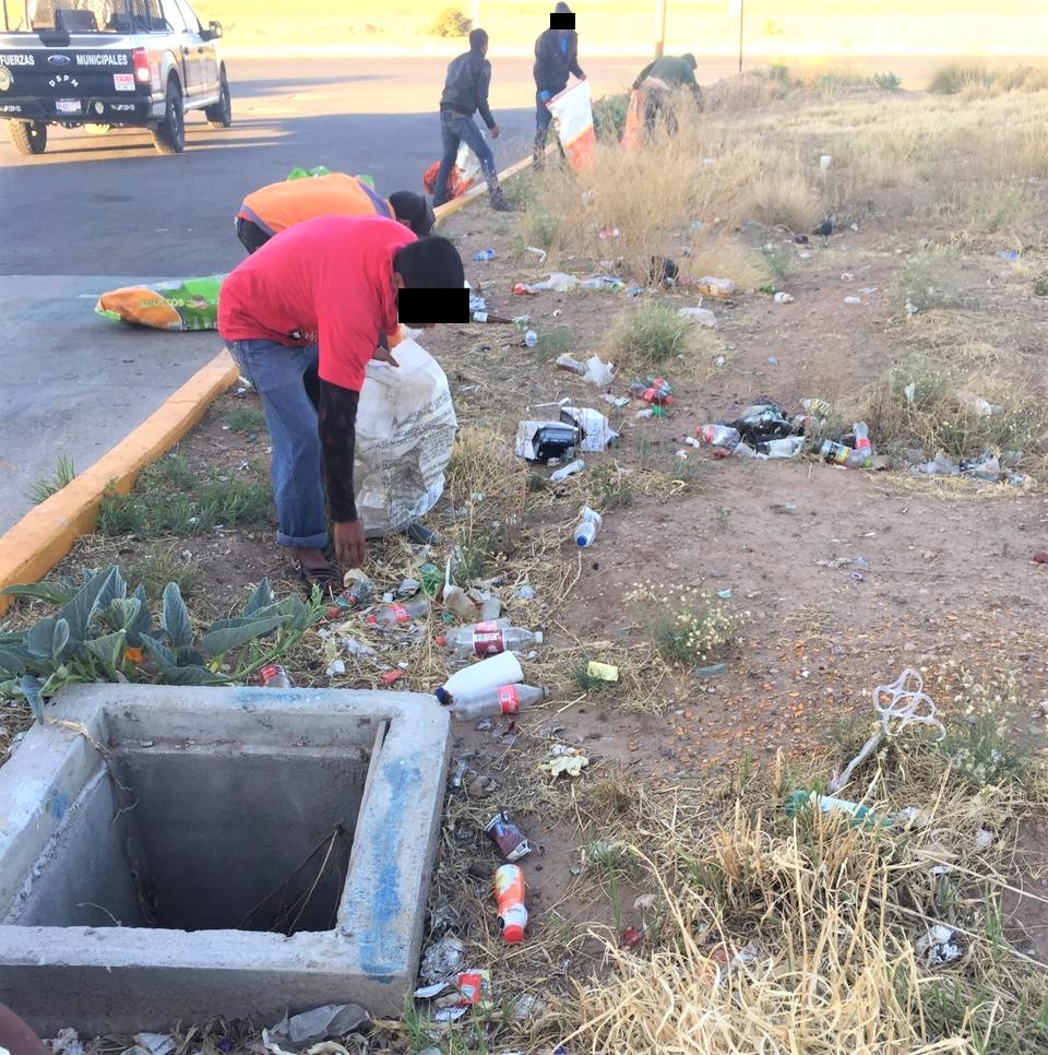 Cuauhtémoc, Chih.- Un total de 14 personas que fueron remitidas durante el pasado fin de semana por diversas faltas administrativas, realizaron labores de limpieza en el kilómetro 45 del tramo carretero que conduce hacia el municipio de Bachíniva, por medio del esquema de justicia cívica y la restitución de su multa con trabajo a favor de la comunidad.
