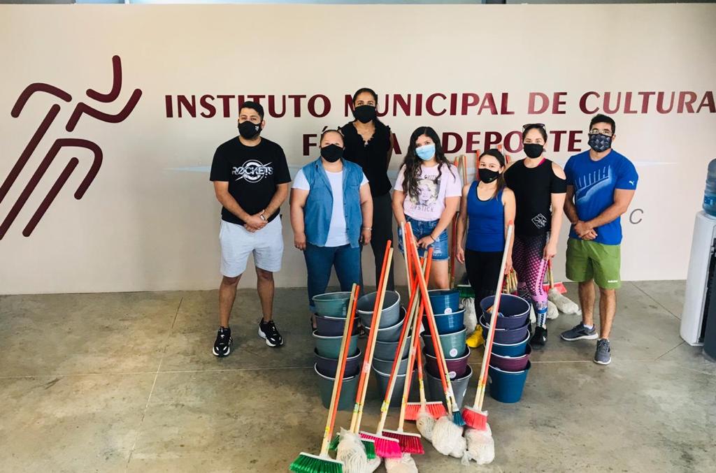 Con esta dotación de los primeros 40 kits de limpieza compuestos por jabón, cloro, gel antibacterial, cubrebocas, escobas y trapeadores, el Instituto Municipal de Cultura Física y Deporte comenzó la repartición de 100 kits disponibles y que hizo otorgó por gestión la regidora, presidenta de la comisión de deporte, Laura Elena Ceballos.