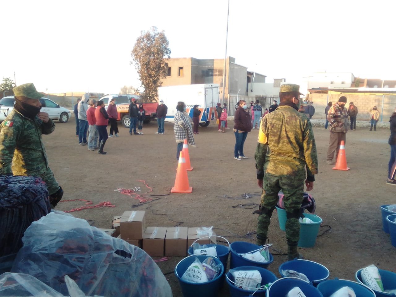 Cuauhtémoc, Chih.- Brigadas integradas por elementos de la Coordinadora Municipal de Protección Civil, Protección Civil del Estado y de la Secretaría de la Defensa Nacional adscritos al Segundo Batallón de Infantería, repartieron mil 159 apoyos a mismos número de familias de diferentes colonias periféricas, como parte de los insumos del Fondo de Desastres Naturales que aportó el Gobierno Federal a solicitud del Gobierno Municipal de Cuauhtémoc por la severa nevada ocurrida en diciembre pasado.