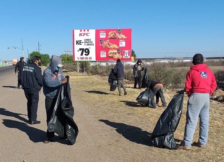 Los infractores realizaron labores de limpieza en el acceso a la ciudad, en la carretera federal número 16 con dirección hacia la capital del estado y en las inmediaciones del parque y arroyo San Antonio, de la calle 6ª hacia la calle Mangos.