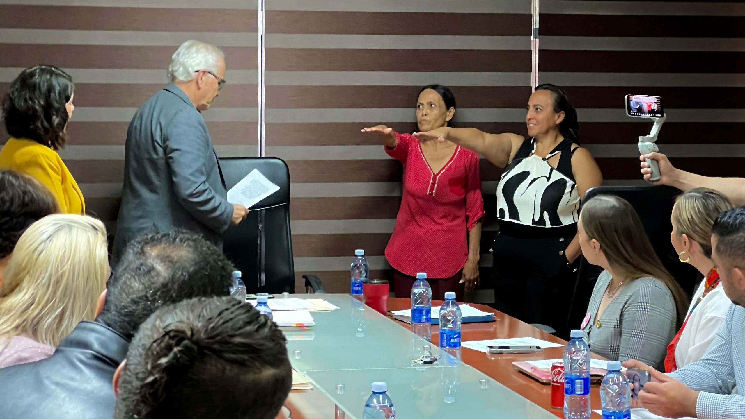 Tanto el Presidente Municipal, como la secretaria del Ayuntamiento, María de Lourdes Pérez; la síndica municipal Luly Mendoza; regidoras y regidores; desearon lo mejor a ambas servidoras públicas en sus encargos.